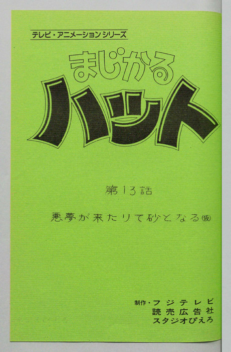 主な出演 : (ハット)伊倉一恵,(ホットケン)鈴木富子,(スピン)松井菜桜子,(ロボッグ)西原久美子,(タウ爺さん)八奈見乗児,(コワル)鈴木みえ,(ドグー)茶風林,(プリンセス),(ピピ),(ププ),(ペペ),(ポポ),(夢見地蔵),(ド【まじかるハット】遥か昔に存在した伝説の勇者「まじかるハット」は地上を脅かす魔界に棲む魔王に立ち向かった。「魔法的超能力」を使いこなす勇者と魔王は激闘を繰り広げ、対決の末に魔王を勇者は異世界の島に魔王を封印して世界に平和をもたらした。そ