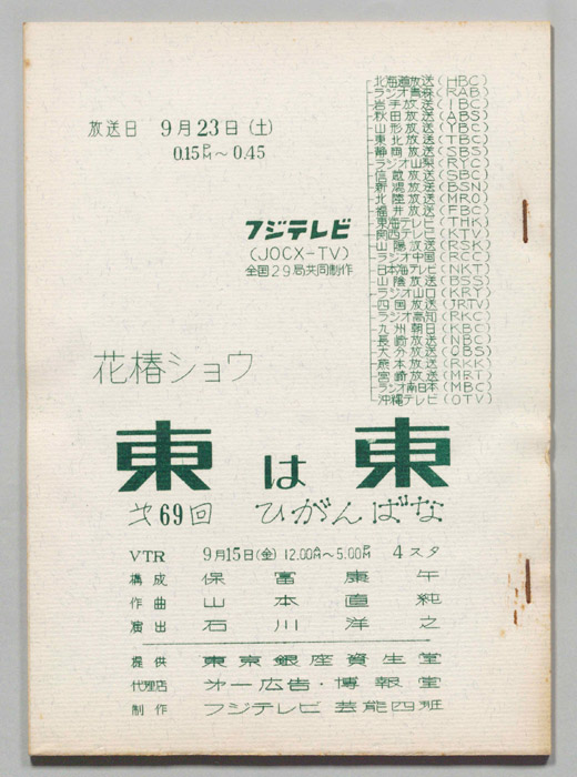 主な出演 : 多玄海,下沢,寺内大吉,(アコーディオン)横森良造,(出題者)黒沢良,よっしゃマン,佐々木つとむ