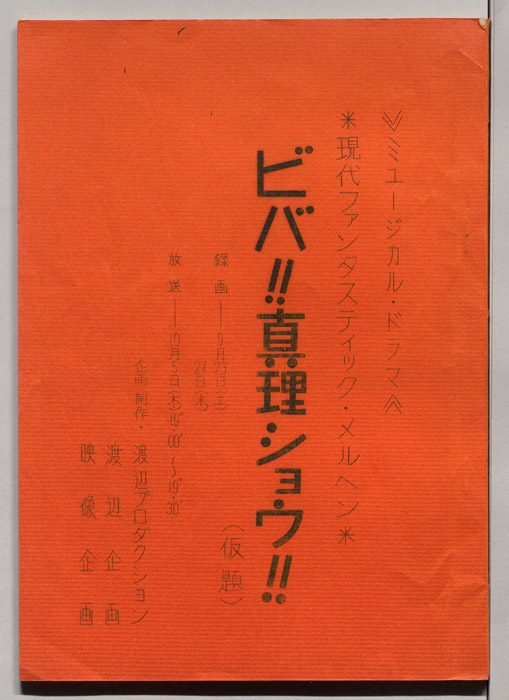 主な出演 : 水谷良重,西村晃,小沢昭一,柳沢真一,芳村真理,藤村有弘,伊藤素道とリリオ・リズム・エアーズ,スタジオ№1ダンサーズ:浦辺日佐夫,小井戸秀宅,斉藤健一,城政幸,中北万里子,名倉加代子,今喜世,平井あつ子,米良栄子,橋本佐智子