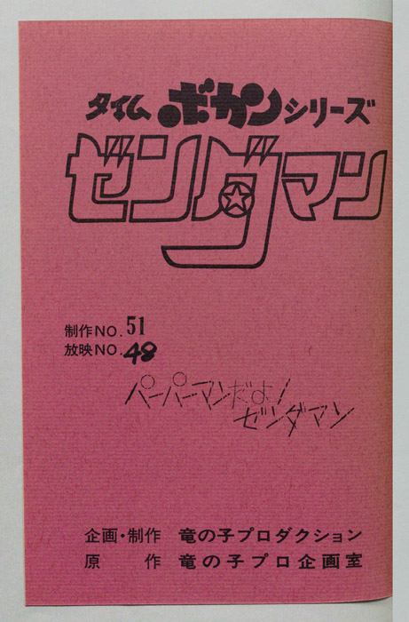 主な出演 : (鉄:ゼンダマン一号)三ツ矢雄二,(さくら:ゼンダマン二号)滝沢久美子,(アマッタン)佐久間あい,(紋者博士)宮内幸平,(ムージョ)小原乃梨子,(トボッケー)八奈見乗児,(ドンジューロー)たてかべ和也,(ニャラボルタ)池田勝,(裁【ゼンダマン】考古学者の「紋者博士」は過去のエジプトに存在した不老長寿の秘薬『命のもと』を探し出し世界平和に役立てるため、時間跳躍を可能とする 「タイムトンネル」を完成させた。だが、紋者博士の研究所の隣に立てられた屋敷に住む『ア