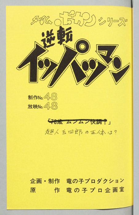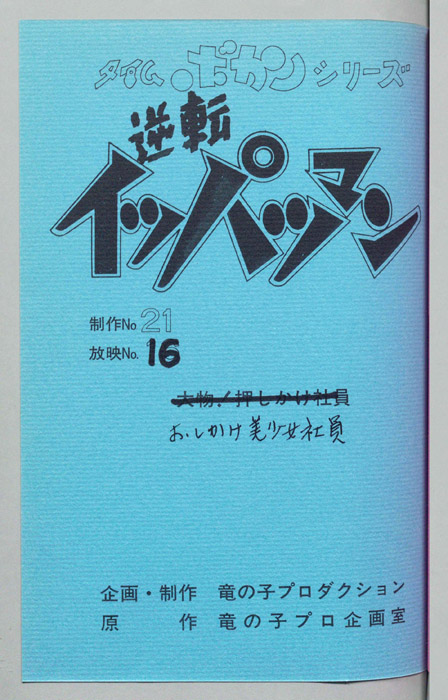 主な出演 : [豪速九(イッパツマン):富山敬,放夢ラン:原えりこ,ハル坊:つかせのりこ,2-3:山本正之,星ハルカ:幸田直子,ムンムン:小原乃梨子,コストネン:八奈見乗児,キョカンチン:たてかべ和也,コン・コルドー:肝付兼太,ミンミン:土井美加,隠『逆転イッパツマン』 国際企業番付で常に業界トップの業績を誇るタイムリース社は時空を超えて様々な時代に荷物を届けるタイム運搬事業を開始した。 そんなタイムリース社のライバル企業であるシャレコーベリース社の会長は、オ