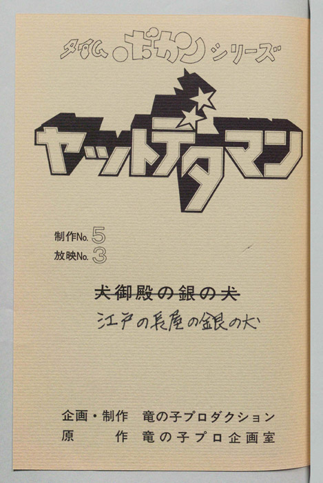 主な出演 : (時ワタル)曽我部和行,(姫栗コヨミ)三浦雅子,(遠山金五郎)阪脩,(カレン姫)土井美加,(ダイゴロン)屋良有作,(ヒレン姫)小原乃梨子,(ジュリー・コケマツ)八奈見乗児,(アラン・スカドン)たてかべ和也,(コマロ王子)丸山裕子,(三【ヤットデタマン】 私立探偵事務所で助手として働くワタルとコヨミの元に1000年の未来から二人の遠い子孫である『カレン姫』がタイムマシンでやってくる。タイムトラベルの目的は時空を飛び越えることができる伝説の『ジュジャク』と