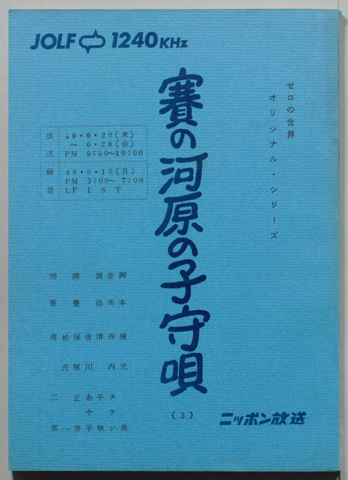 主な出演 : 八代駿,小林修,雨森雅司,沢田敏子,槐柳二,宮沢元,小林修,野本礼三,納谷六朗,肝付兼太,小宮山清,