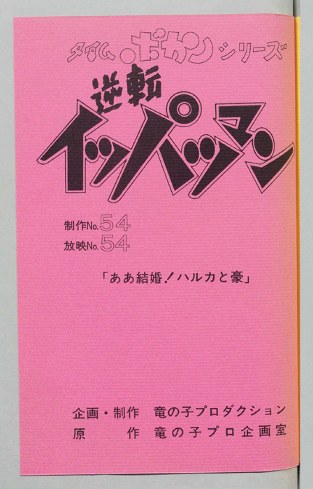主な出演 : [豪速九(イッパツマン):富山敬,放夢ラン:原えりこ,ハル坊:つかせのりこ,2-3:山本正之,星ハルカ:幸田直子,ヒゲノ部長:長堀芳夫,ムンムン:小原乃梨子,コストネン:八奈見乗児,キョカンチン:たてかべ和也,ピーコ:横尾まり,セーコ:青『逆転イッパツマン』 国際企業番付で常に業界トップの業績を誇るタイムリース社は時空を超えて様々な時代に荷物を届けるタイム運搬事業を開始した。 そんなタイムリース社のライバル企業であるシャレコーベリース社の会長は、オ