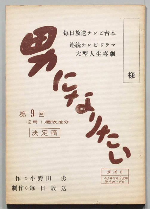 • 作家 : 小山内美江子,高久進,池田雄一,佐藤純弥,瀬川昌治,(構成)深作欣二,佐藤純弥