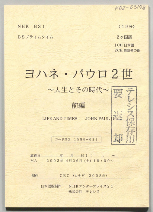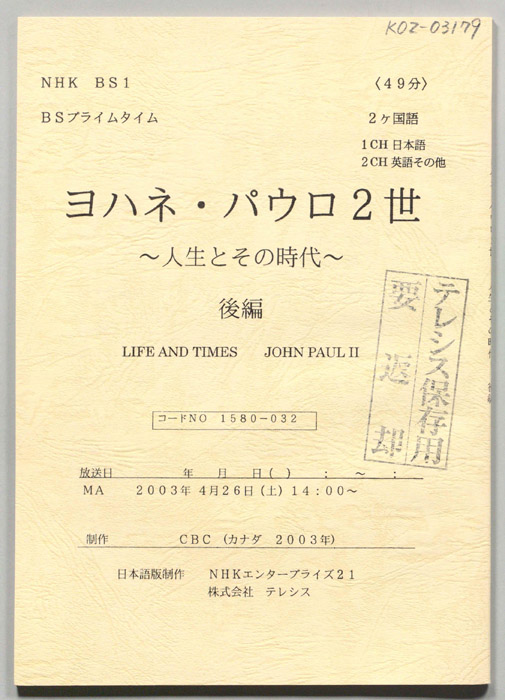 主な出演 : 熊谷真実,藤田弓子,田中裕子,早川里美,二木てるみ,益田喜噸,新井みよ子,三木弘子,三國一朗,村田みゆき,福田信昭,ラドバウト・モリン,,(ナレーター)飯窪長彦アナウンサー