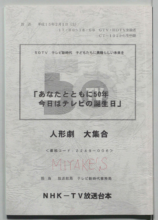 主な出演 : 石川ひとみ,伊藤悟,井上ひさし,宇野誠一郎,神谷明,楠トシエ,熊倉一雄,小林恭治,ひとみ座,(総合司会)三宅民夫アナウンサー,黒柳徹子