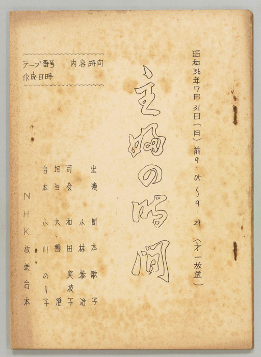 主な出演 : 吉行和子,小栗一也,森塚敏,小林恭治,原田洋子,池田昌子,大川太郎,(語り手)久松保夫