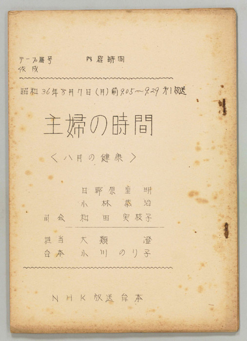 主な出演 : 小園蓉子,西田昭一,前沢廸夫,戸川暁子,水原佳代子,小栗一也,納富久美子,小林恭治,林佐知子,杉田郁子,手塚晴美,小池明義,(語り手)中村すみ