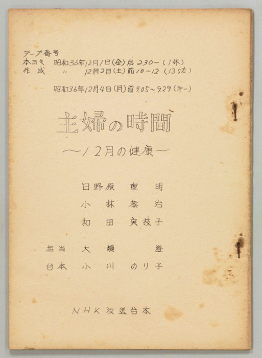 主な出演 : (手書き)文野朋子,春日俊二,村上冬樹,芦田進介,小林恭治,松尾佳子,西田昭一,(語り手)榊原アナ