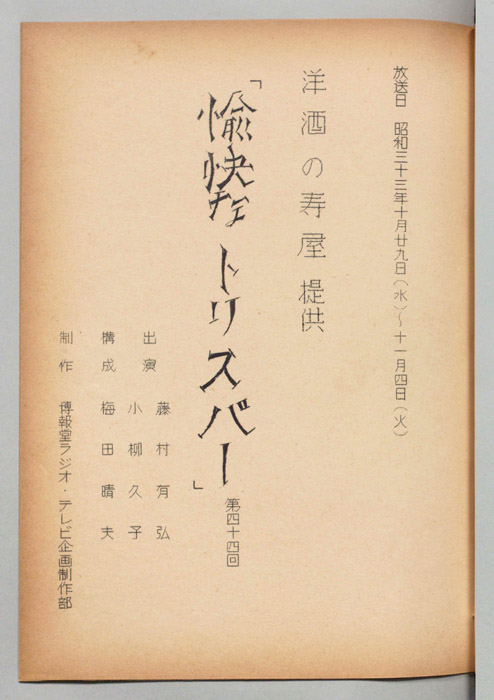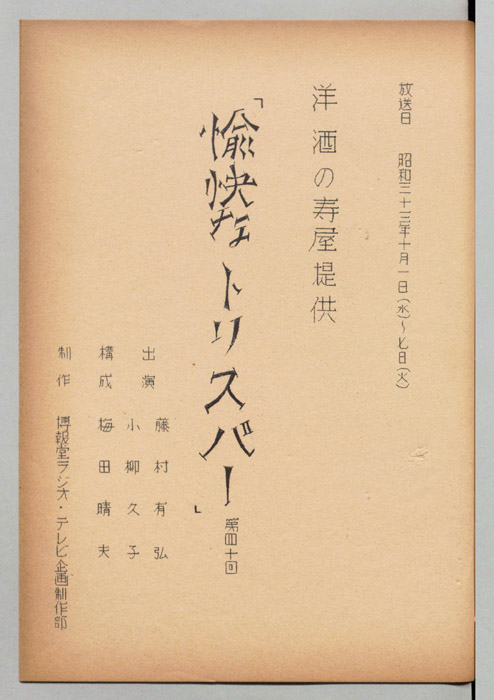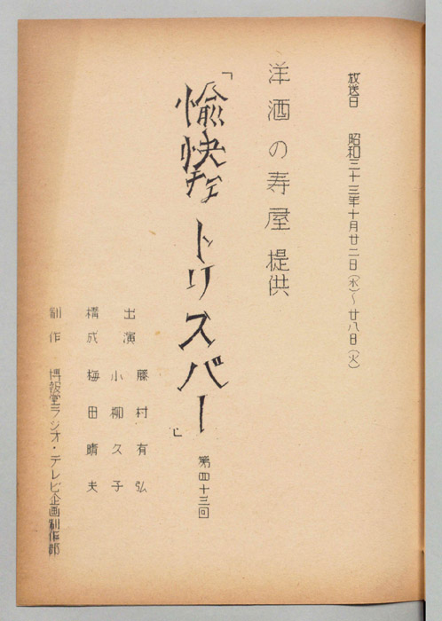 主な出演 : 渥美国泰,江戸家猫八,福本泰子,島崎雪子,西川敬三郎,近松良枝,橋本恵美子,山崎恵,加藤博司,磯村みどり,加藤和夫,万里陽子,林昭夫,義那道夫,藤田啓二,香山光子,小柳久子,真木不二夫,神崎キヨ,千葉信男,有島一郎,楠トシエ- 作家 : 土井行夫