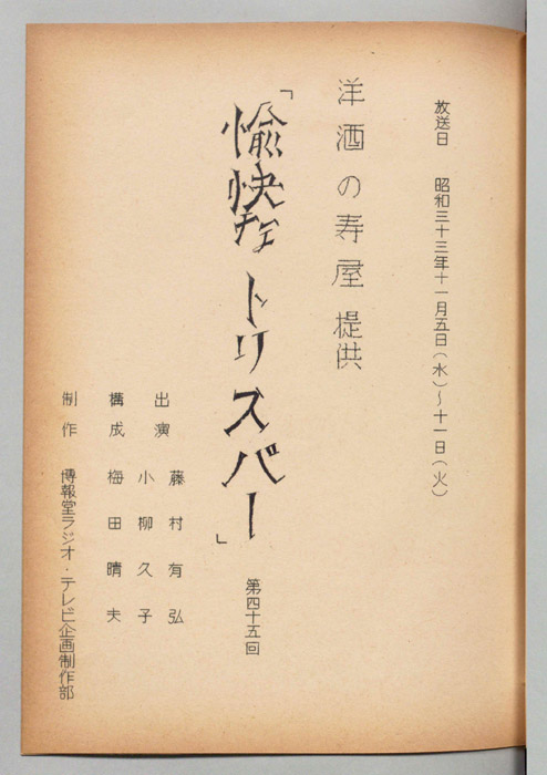 - 放送局 : 東京宝塚劇場