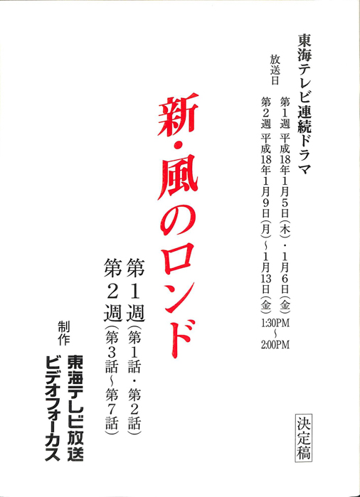 主な出演 : 小沢真珠【新・風のロンド】野代建設を興した野代辰吉は莫大な資産を築き上げ、やがて三人の息子をもうけた。太平洋戦争の最中、辰吉の次男・野代浩二は恋人の有沢槙と結婚の約束をしていたが、浩二に召集令状が届いたことによって二人は離れ離れになっ