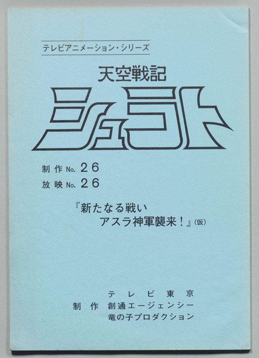 『天空戦記シュラト』 タツノコプロが制作した、異世界ファンタジーや青春群像劇の要素を持つアクション作品。 主人公であるシュラトは親友のガイと共に空手などの格闘技に熱中する日々を送っていたが、ある時、突