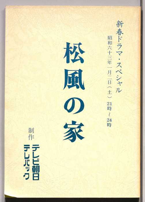 主な出演 : 中井貴一,柴田恭兵,平幹二朗,若松武,篠塚勝,宍戸錠,児玉清,小林克也,岡村菁太郎,宮崎萬純,滝田裕介,岩下浩,森田順兵,水谷敦,室井奈穂子,飯島京子,宇津井健,岸田今日子,小川真由美,西田敏行,(語り)若尾文子- 作家 : 田向正健