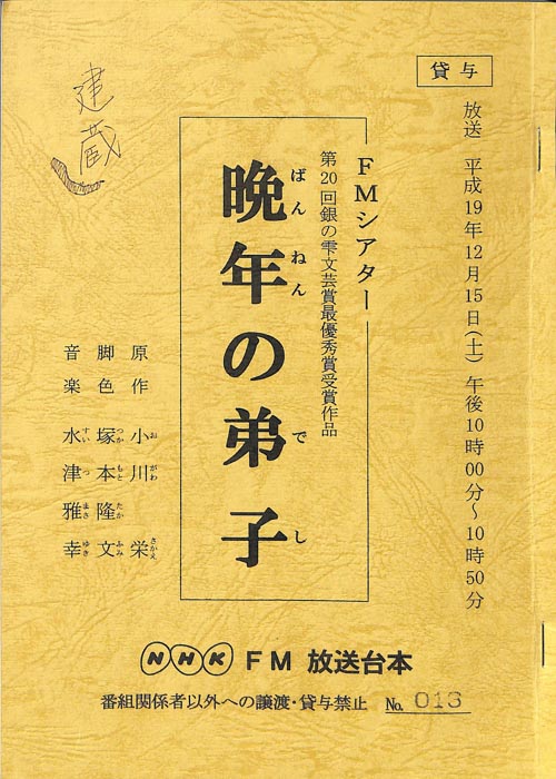 主な出演 : 村上弘明,[益岡徹,渡辺文雄,細川俊之,伊武雅刀,小野武彦,鈴木瑞穂,清水紘治,モロ師岡,鶴田忍,中川安奈,宇都宮雅代]- 作家 : 重森孝子
