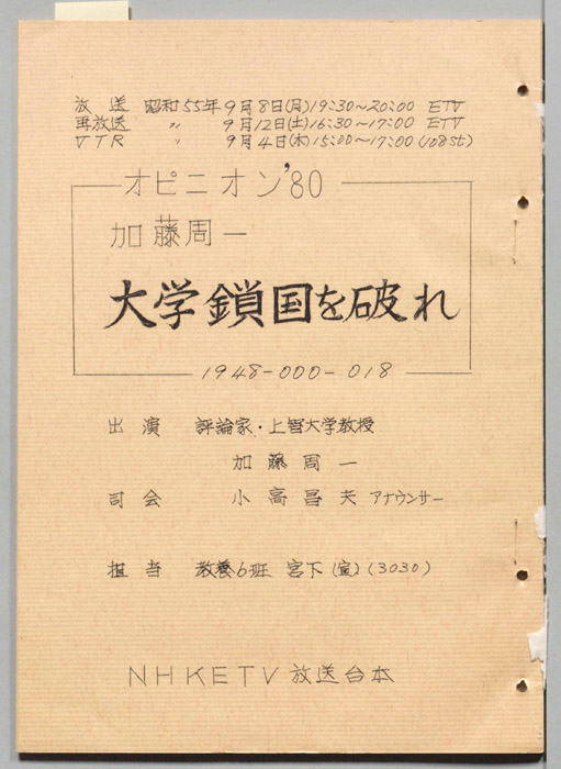 (評論家・上智大学教授)加藤周一,(司会)