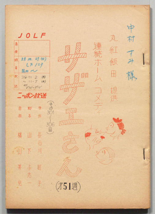 主な出演 : 横山道代,巌金四郎,露原千草,高橋実,金子由利江,谷幹一,中村すみ,小原いづみ,大森暁美,福田とよ,笈田勝弘東京の静かな住宅地に住む「磯野家」には、父・波平、母・フネ、長女・サザエ、長男・カツオ、次女・ワカメが周囲の人々と共に、賑やかに暮らしていた。後にサザエはフグ田マスオと結婚して、長男・タラオが誕生し三世代家族として、昭