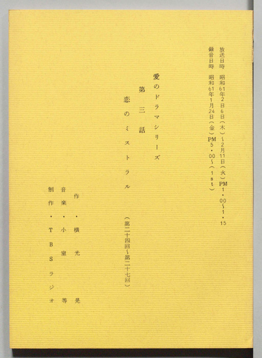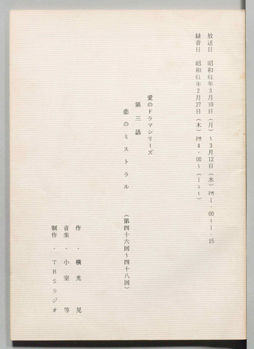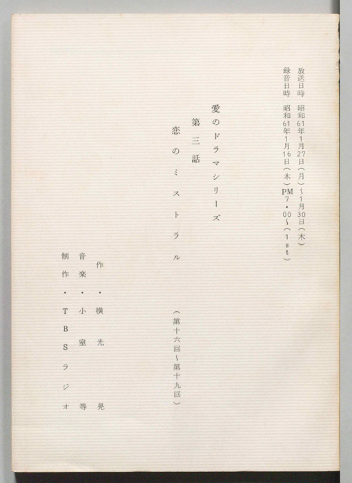 主な出演 : 秋吉久美子,近藤正臣,滝田栄,黒木瞳,山口果林,松本留美,幸和希,津島道子,多賀勝,香山美子,藤村志保,杉浦直樹- 作家 : 櫻井康裕