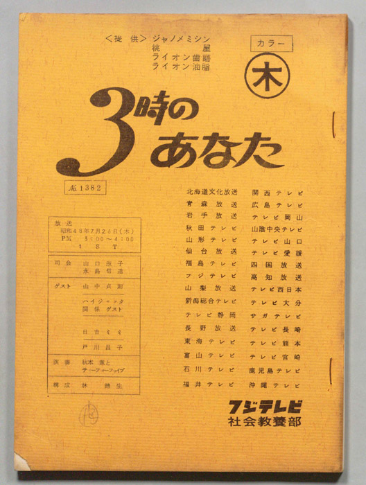 主な出演 : 小川宏,山口淑子,E・H・エリック,岡田真澄,西崎緑若葉会,三浦布美子,黒沢明とロス・プリモス,デューク・エイセス,西田佐知子,五十嵐喜芳,見砂直照と東京キューバン・ボーイズ,ミルタ・テレシタ・マッサ