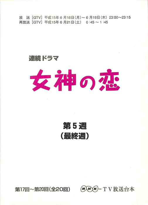 主な出演 : 高橋克典,仲間由紀恵,渡辺満里奈,畑野浩子,黒坂真美,磯野貴理子,松尾政寿,山口祐一郎,柴咲コウ,坂口憲二,鈴木任紀,宮地真緒,東出典子,垂澤和成,西田征史,菊池由衣,石井麻由,野口ふみえ,若松武史,山田明郷,根岸季衣,田中美奈子,山口果林- 作家 : 田渕久美子