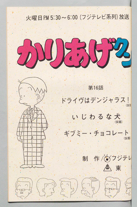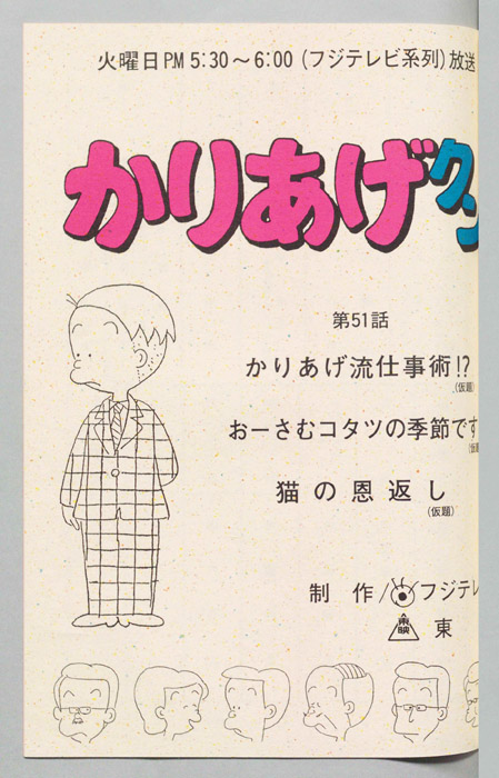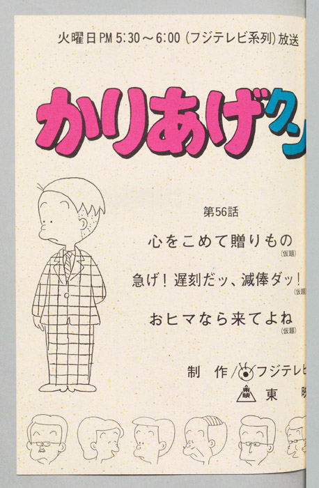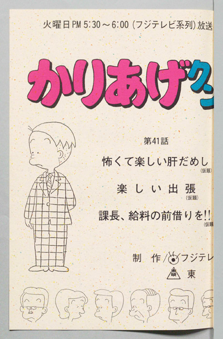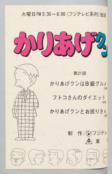 主な出演 : (かりあげ)[塩屋翼],(鈴木ヒサエ)[渡辺菜生子],(村田太子)[江森浩子],(課長)[野田圭一],(佐藤)[堀川亮],(古川)[難波圭一],(カヨコ)[川浪葉子]/(かりあげ)[塩屋翼],(課長)[野田圭一],(佐藤)[堀川亮],(ひ『かりあげクン』「ほんにゃら産業」の営業課に勤務し、刈り上げ頭が特徴的なサラリーマン「かりあげ正太」は、上司に媚びることを嫌い、人と同じ行動を取ることを好としない変わり者だった。しかし、イタズラをすることには天才的な能力を発揮する。正