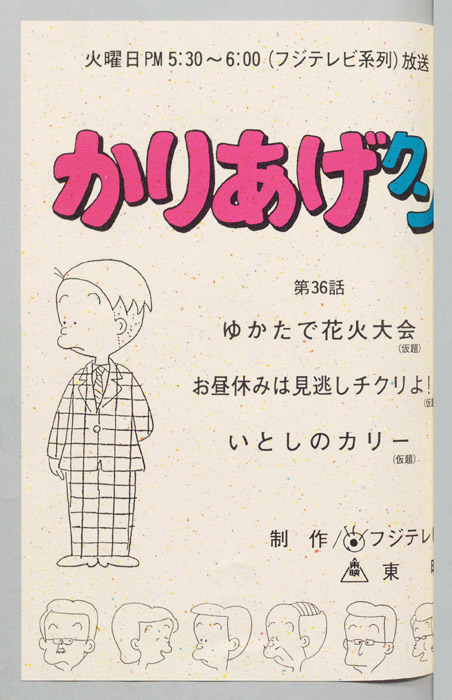 主な出演 : (かりあげ)[塩屋翼],(木村課長)[野田圭一],(古川)[難波圭一],(佐藤)[堀川亮],(ヒサエ)[渡辺菜生子],(太子)[江森浩子],(釣り人),(女係員),(店員),(男係員),(中年女),(銀行員),(総務部長)/(か『かりあげクン』「ほんにゃら産業」の営業課に勤務し、刈り上げ頭が特徴的なサラリーマン「かりあげ正太」は、上司に媚びることを嫌い、人と同じ行動を取ることを好としない変わり者だった。しかし、イタズラをすることには天才的な能力を発揮する。正