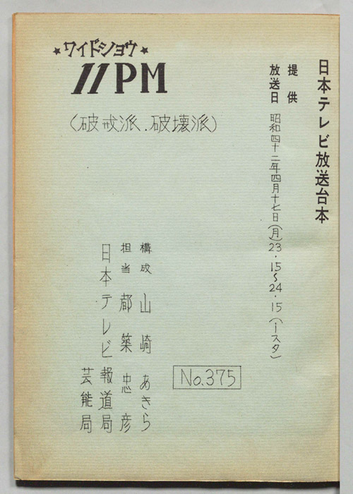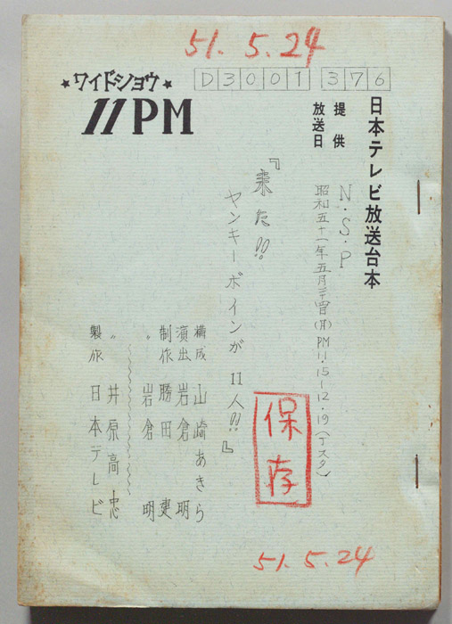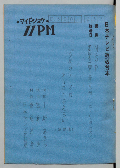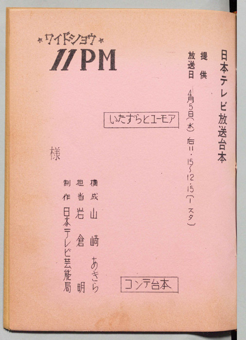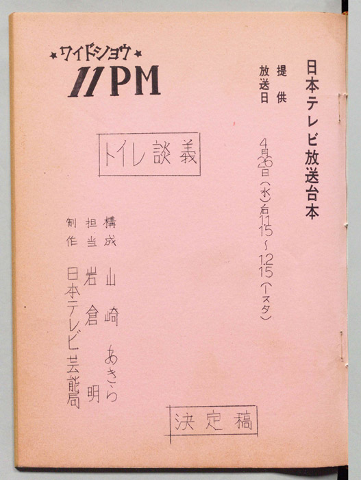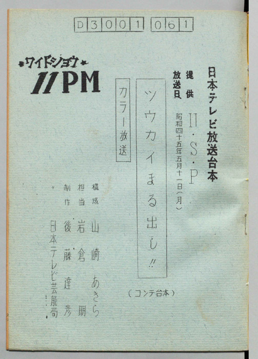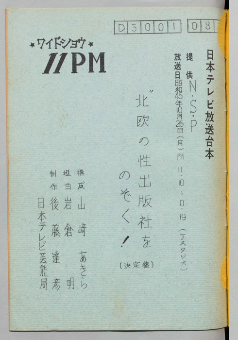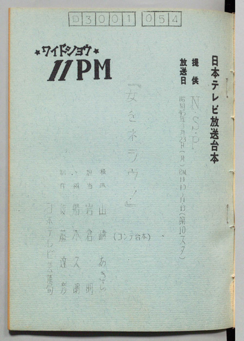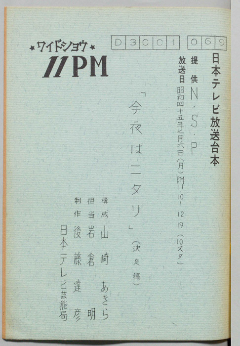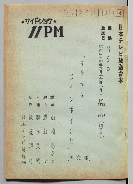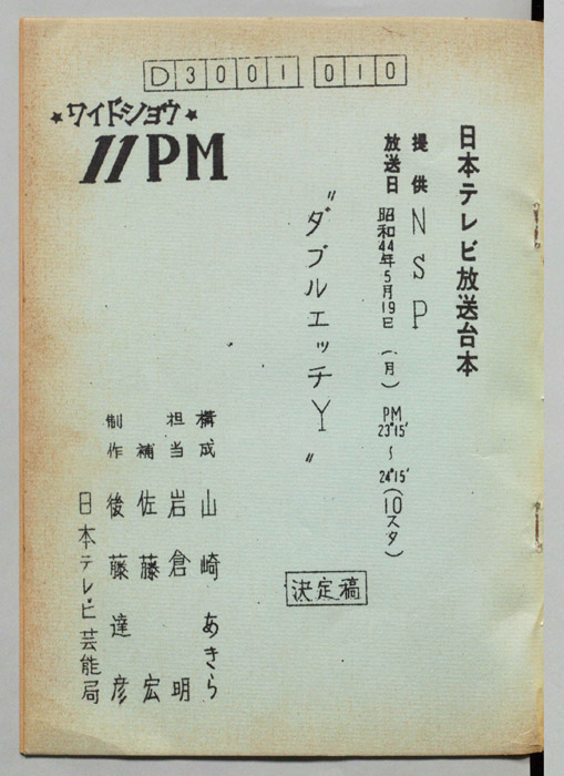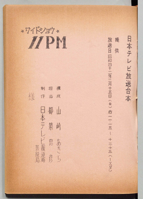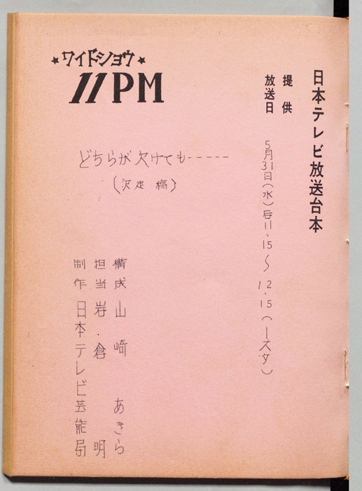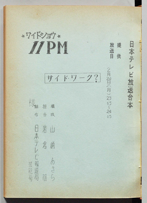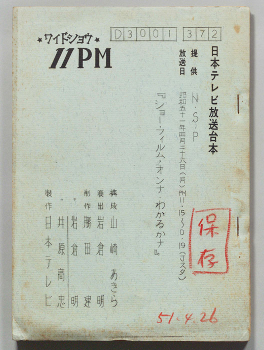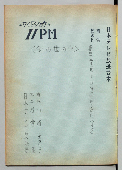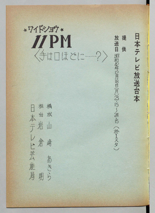 主な出演 : 大橋巨泉,松岡きつこ,池島るり子,山崎あきら,黒田高教,久里洋二,ザ・サラブレッズ