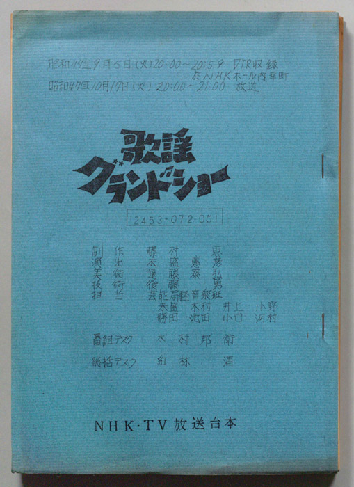 主な出演 : 加山雄三,荒川少年少女合唱隊,上條恒彦,(マスコット)マンデーくん,(司会)石毛恭子,(コーラス)ザ・チャーブス,(演奏)ミリオンポップス・オーケストラ