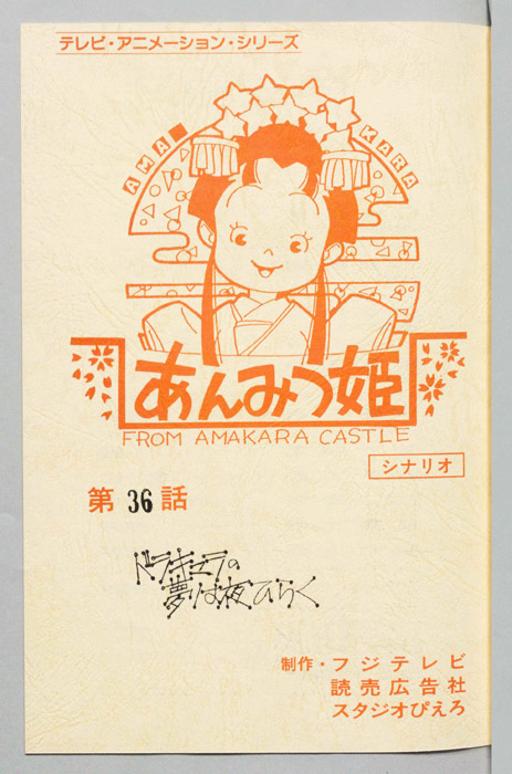 主な出演 : (あんみつ姫)小山茉美,(団子の守)神山卓三,(しぶ茶)京田尚子,(家老)八奈見乗児,(柿の種介)千葉繁,(おはぎの局)鈴木れい子,(カステラ)青木菜奈,(甘栗の助)三田ゆう子,(源内)富山敬,(まんじゅう)渕崎ゆり子,(塩豆)星【あんみつ姫】あまから城のお姫様「あんみつ姫」は、器量がよく優しい性格をしているが、やんちゃでおてんばなところがあり、その好奇心から城の中だけでなく、城下町でも自由奔放な行動をしては周囲の人々を困らせていた。ア- 作家 : 山本優