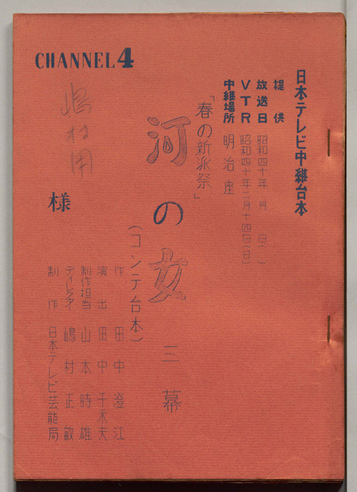 主な出演 : 伊志井寛,水谷八重子,波野久里子,市翠扇,瀬戸よう子,英つや子,安井昌二,久門祐夫,常盤みどり,伊吹武,島章,森雅之,霧立のぼる,大久保彰久,緋多景子,高橋慶子,立松昭二,柳田豊,中田三一朗,竹内京子,一條久枝,中川秀夫,半田真二,山崎有代