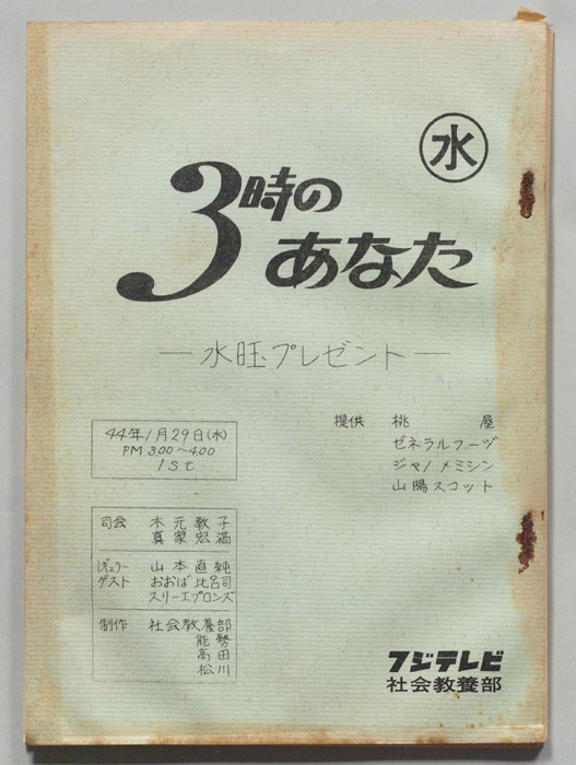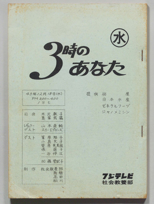 主な出演 : 田,(ゲスト)関根潤三,深沢弘アナウンサー,柳家小さん師匠のおカミさん,富田勲,北村英治,秋満義孝,池沢行男,須永ひろし,光井章夫,河辺浩市,「るるぶ」伊崎編集長,小柳ルミ子,山本直純,倉原,さいとうたかお,伊東ゆかり,千昌夫,舟木一夫,博