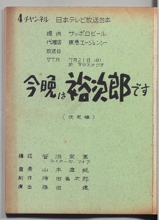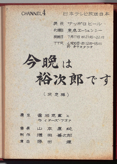 主な出演 : 石原裕次郎,シャープス・エンド・フラッツ,長谷百合,中村勘九郎,中村梅枝,小川光照,坂東八十助,大谷広松,子供たち,山本直純,スタジオNo.1ダンサーズ