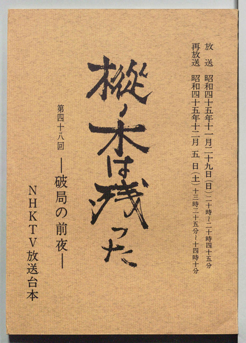主な出演 : 滝田栄,夏目雅子,勝野洋,田中健,内藤武敏,本田博太郎,山本亘,木村四郎,山本耕一,武原英子,久富惟晴,若林豪,久米明,谷隼人,(語り)館野直光
