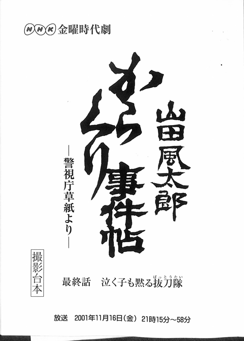 主な出演 : 小林桂樹,田辺誠一,原田知世,坊屋三郎,野村佑香,深沢敦,楊原京子,池田成志,信太昌之,小林宏史,康すおん,平崎晶子,今福将雄,及川以造,風見章子,小林勝也,武発史郎,蓑輪祐太,花ヶ前浩一,鐘築建二,西田聖志郎,村澤寿彦,伊武雅刀,近- 作家 : 杉山義法