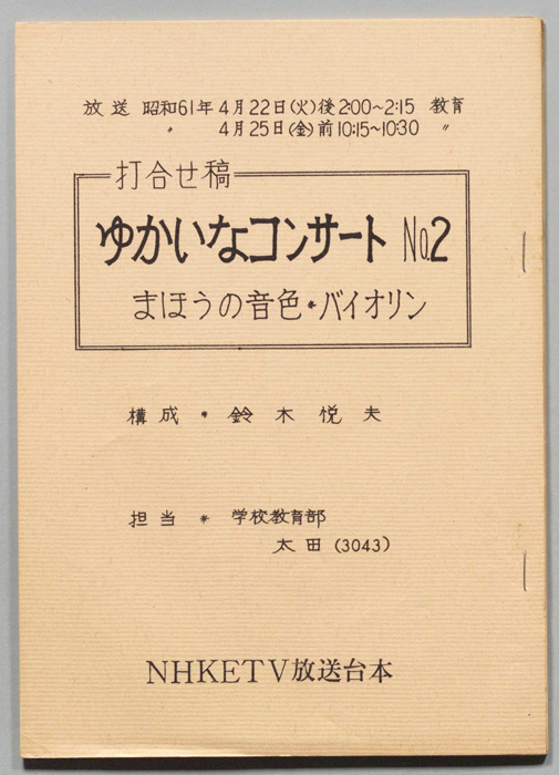 主な出演 : (司会)青島広志,山野さと子,(ゲスト演奏)/篠崎史子,西畑正三,玉木弦楽四重奏団,(人形声)川久保潔,(人形)小林次郎,まきたまさこ