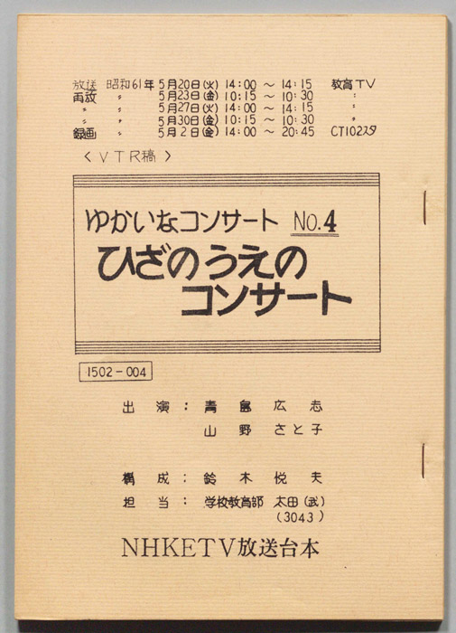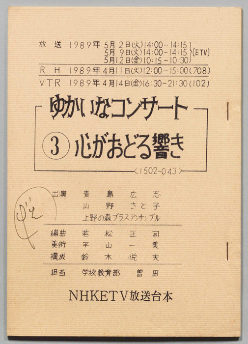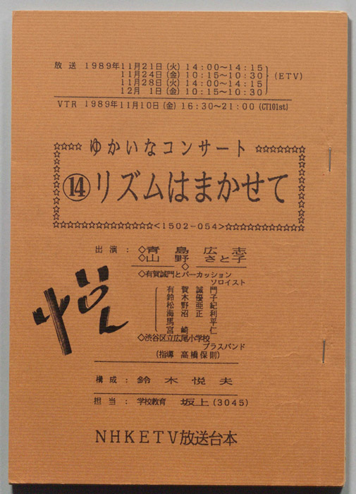 主な出演 : (司会)青島広志,山野さと子,(ゲスト)有賀誠門とパーかションソロイスト【有賀誠門,鈴木優子,松野亜紀,海沼正利,海平,宮崎仁】,渋谷区立広尾小学校ブラスバンド【高橋保則】