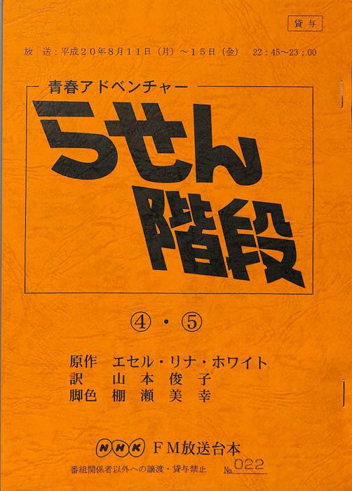 主な出演 : 大路恵美,内田健介,山野史人,倉野章子- 作家 : 工藤千夏(4),蜂飼耳(5)