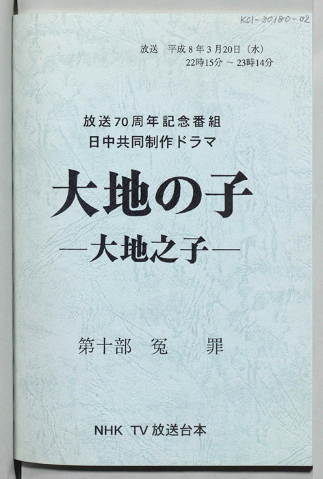 主な出演 : 鈴木杏,王維維,西須隼太,徐宏,張春祥,梁月軍,薄宏,肖莫庸,程波,朱一明,候偉,張紹偉,王利国,呉智明,須藤みり愛,水野花,貴島康成,岳秀清,森下愛子,加藤健一- 作家 : 吉田紀子
