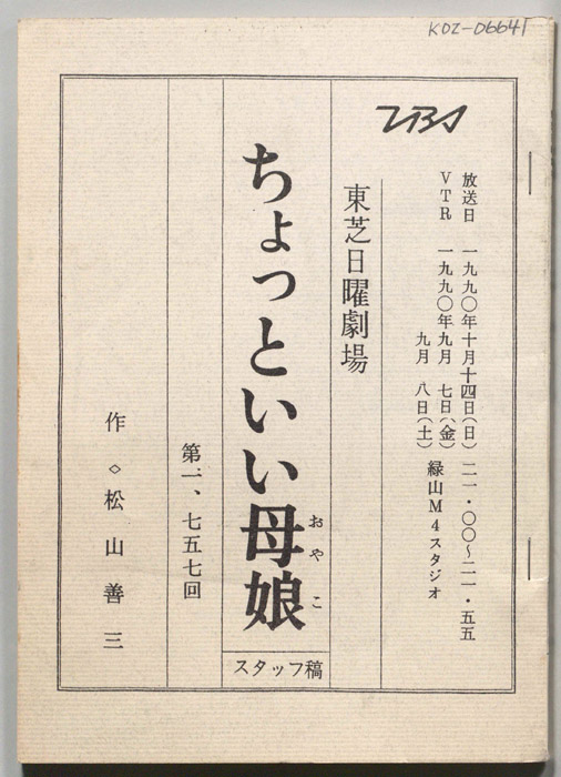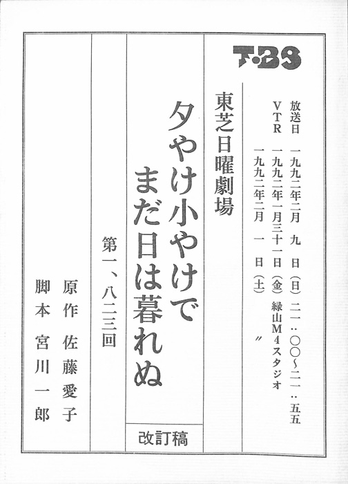 主な出演 : 杉良太郎,田中春男,都家かつ江,岡本信人,若原瞳,(ナレーター)納谷悟朗- 作家 : 橋田壽賀子