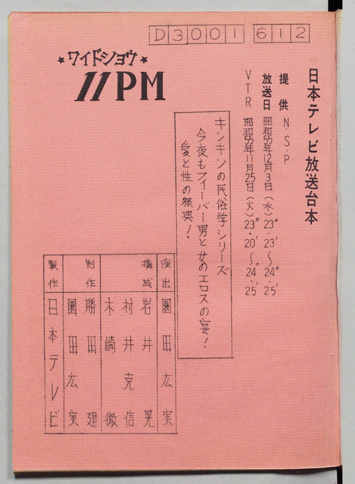 大橋巨泉,一谷伸江,藤村俊二,久里洋二,ナンシー・チェニー