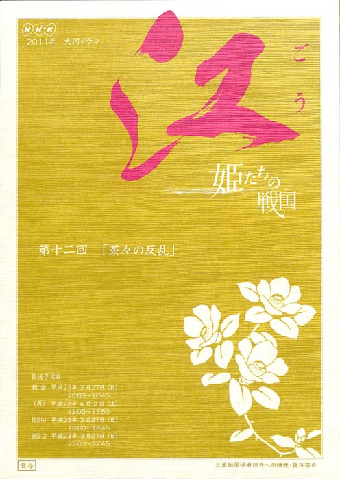 主な出演 : 上野樹里,宮沢りえ,水川あさみ,鈴木保奈美,萩原聖人,ミムラ,鈴木砂羽,和泉元彌,北村有起哉,袴田吉彦,内倉憲二,吉田羊,石坂浩二,奈良岡朋子,岸谷五朗,大竹しのぶ,北大路欣也- 作家 : 田渕久美子