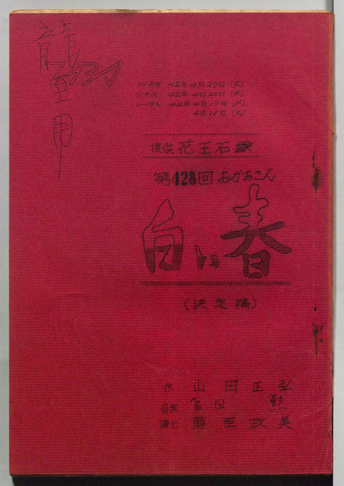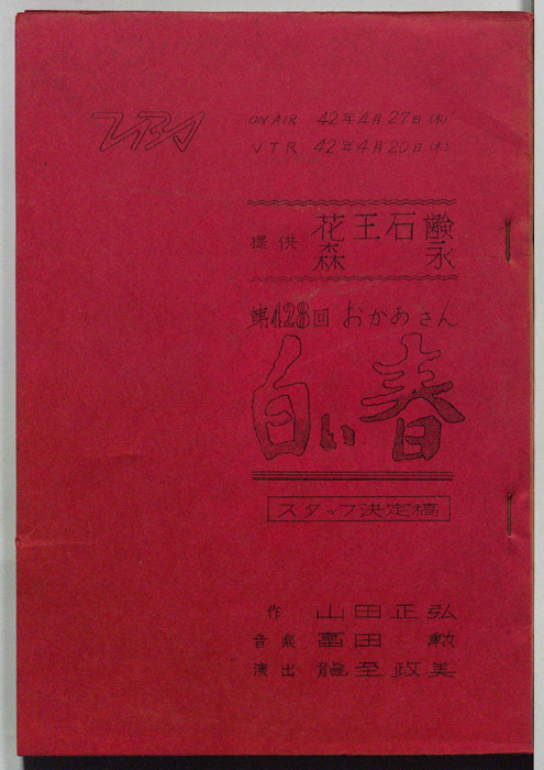 主な出演 : 竹脇無我,佐分利信,杉浦直樹,栗原小巻,岩崎加根子,長岡輝子,永井智雄,岸輝子,木村俊恵,原田清人,新藤恵美,山崎直衛,森本景武,渡辺康子,浅川みゆ起,藤田淑子,磯野のり子- 作家 : 楠田芳子