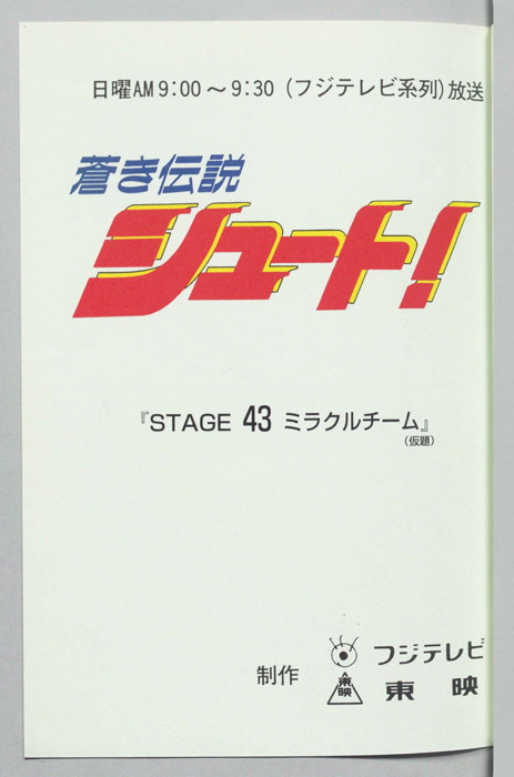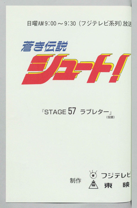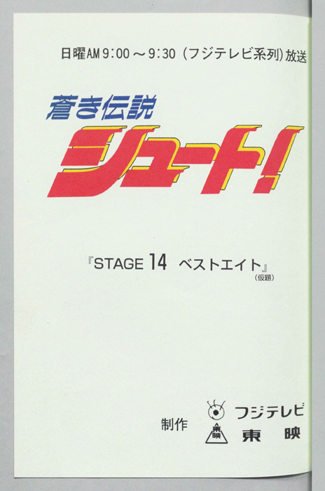 主な出演 : 保嘉晴)古川登志夫,(松下)中原茂,(広瀬)阪口大助,(広瀬の弟),(斉木誠)堀川りょう,(加納)堀秀行,(浩子),(忍),(宍戸)岸野幸正,(アナウンス)【蒼き伝説シュート!】新設校のサッカー部を創部半年で強豪へ育て上げたファンタジスタ「久保嘉晴」に憧れて掛川高校サッカー部に入部した「田仲俊彦」は、同じ中学から進学してきた「平松和広」「白石健二」の二人とともにその実力を発揮し、一
