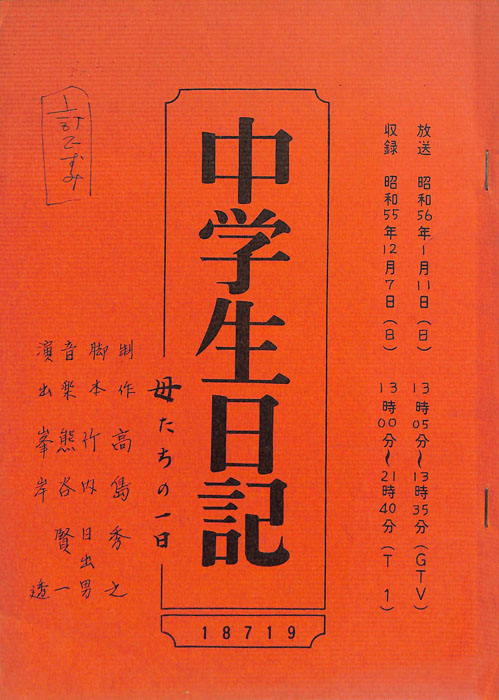 主な出演 : 鬼頭昭夫,藤田康雄,湯浅実【中学生日記】 中学生日記は1972年から2012年3月まで長きに渡って放送された学園ドラマである。1962年4月から放送された「中学生次郎」という番組を前身とし、何度か番組名を変更しつつ本ドラマに至る。最