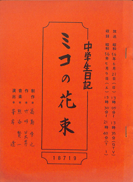 主な出演 : 実谷美和子,実谷恵美,上月佐和子【中学生日記】 中学生日記は1972年から2012年3月まで長きに渡って放送された学園ドラマである。1962年4月から放送された「中学生次郎」という番組を前身とし、何度か番組名を変更しつつ本ドラマに至る。最