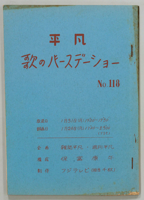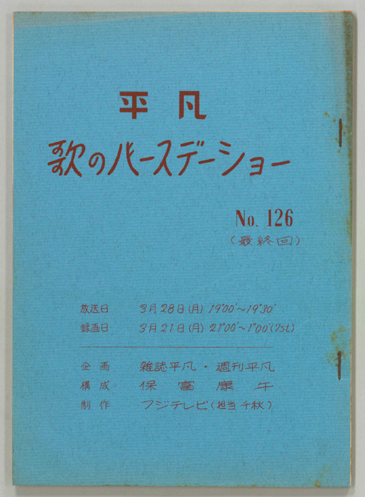 主な出演 : 村田英雄,三沢あけみ,弘田三枝子,伊東ゆかり,島和彦,金井克子,アントニオ古賀,中尾ミエ,スターダスト・ガールス,ザ・フラッシャーズ,花柳滝蔵社中,一竜斉貞鳳,藤村有弘- 作家 : 西野浩三,[川崎真]