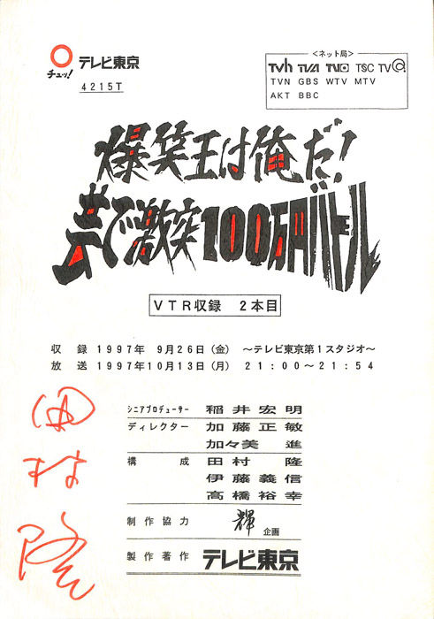 主な出演 : ゆ~とぴあ,川上のぼる,T・I・M,(司会)草野仁,岡本夏生- 作家 : 舘直志