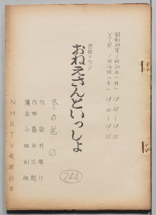 主な出演 : 杉浦直樹,司葉子,浜田朱里,大木実,峰岸徹,柏木由紀子,石立鉄男,広岡瞬,熊谷真実,(以下手書き)谷口香,吉行和子,鈴木ヒロミツ,加藤和夫,山本清,勝田久,川上夏代,池田道枝