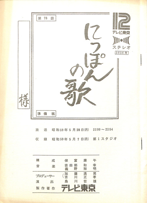 主な出演 : 五木ひろし,川中美幸,松村和子,(司会)長門裕之,南田洋子- 作家 : 古田求
